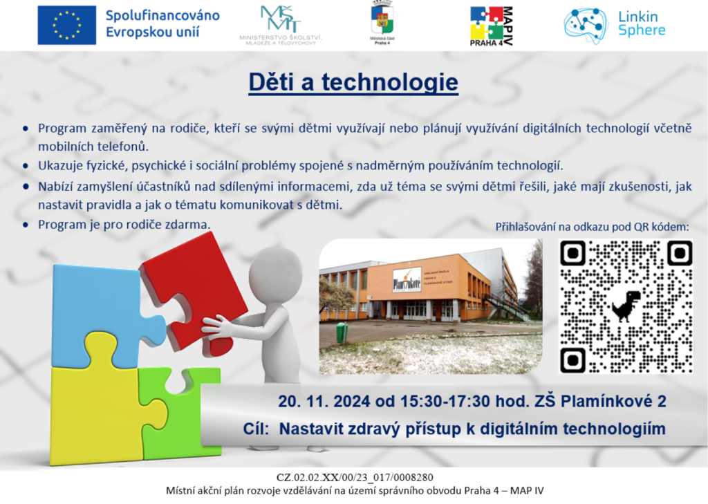Koná se 20. listopadu 2024 od 15,30 do 17,30 v Základní škole Plamínkové (ulice Plamínkové 2).
